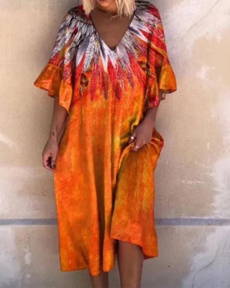 Be the first to review “Tie-Dye Print Batwing Sleeve Loose Maxi Dress”
